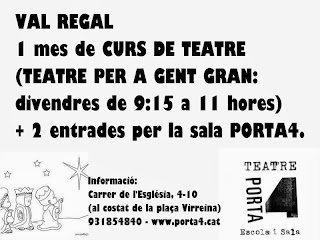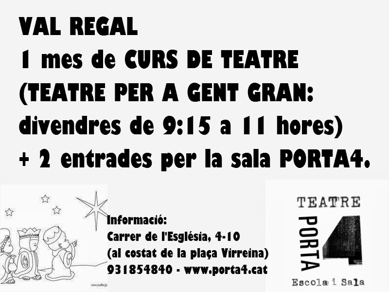 VAL REGAL: 60€ (1 mes de curs de teatre+2 entrades per la sala PORTA 4)